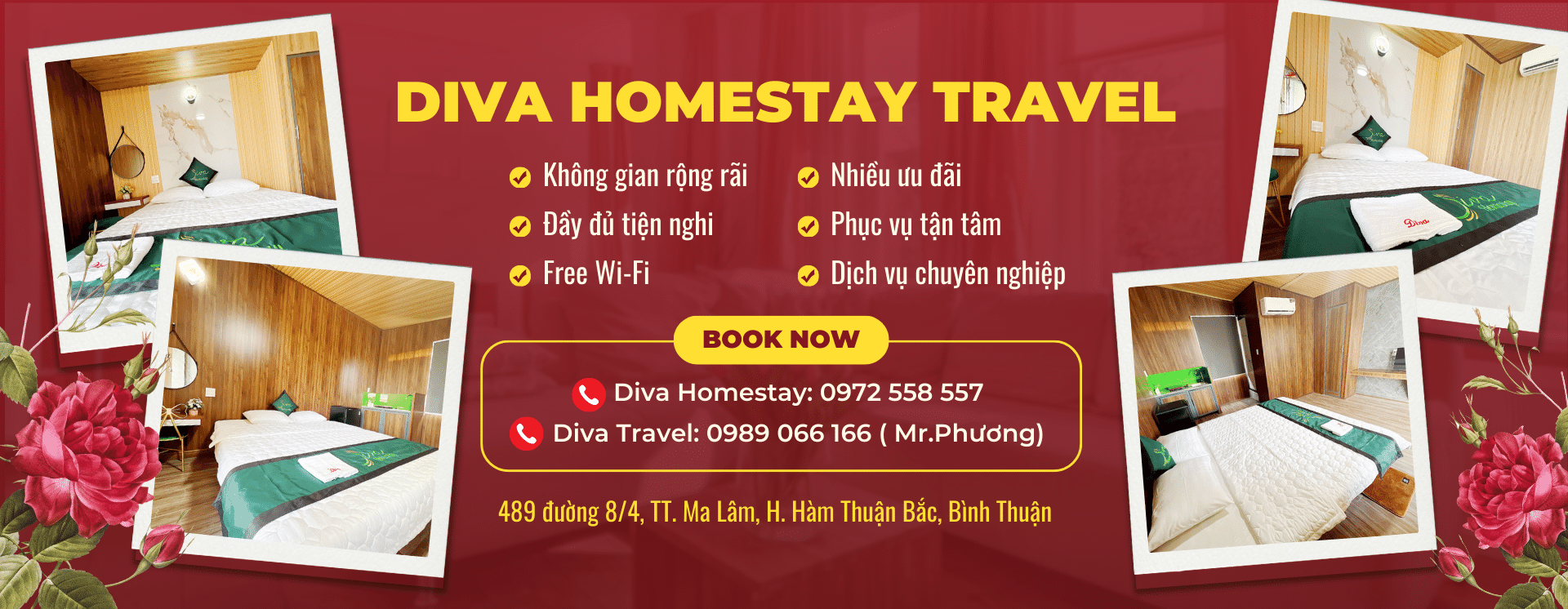 Được tọa lạc tại 489 đường 8/4, thị trấn Ma Lâm, huyện Hàm Thuận Bắc, tỉnh Bình Thuận, cách trung tâm và biển Phan Thiết 15 phút di chuyển. Diva Homestay Travel sở hữu không gian bình yên, mộc mạc và hài hòa với khung cảnh thiên nhiên mang lại cho bạn những giây phút yên bình để nghỉ ngơi, hay đơn giản là nơi cho bạn tìm về để thư giãn sau những bộn bề, hối hả của công việc và cuộc sống tấp nập.