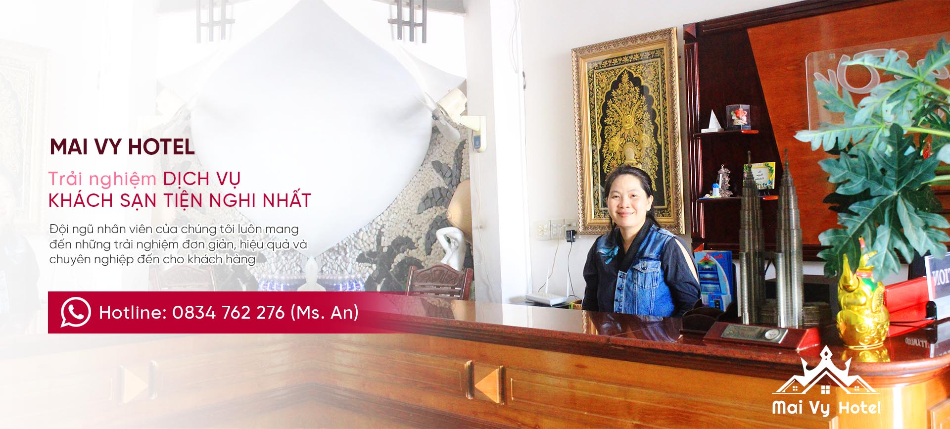 Đến với Mai Vy Hotel, bạn không chỉ đến nghỉ dưỡng tại 1 khách sạn, mà bạn đang về “nhà” tại Phan Thiết nhờ sự phục vụ tận tâm của đội ngũ nhân viên nhiệt tình, chuyên nghiệp. Bất cứ khi nào bạn gặp khó khăn hay cần trợ giúp, nhân viên khách sạn sẽ lập tức có mặt để hỗ trợ du khách hiệu quả nhất có thể. Đặc biệt, chất lượng dịch vụ của Mai Vy Hotel đã được nhiều du khách công nhận và mong muốn được trở lại khi đến với Phan Thiết. Mai Vy Hotel hiểu rằng đây mới là giá trị đích thực vì được khách hàng tin tưởng cho kỳ nghỉ, chuyến công tác của mình. Với dịch vụ chuyên nghiệp, tận tình, Hotel Mai Vy đảm bảo mang đến cho bạn một kỳ nghỉ dưỡng đáng nhớ tại vùng đất đầy nắng và gió Phan Thiết – Bình Thuận.